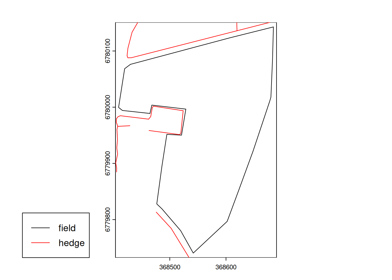 Let’s zoom in an area around Pleine-Fougères to visualize the hedges in BD HAIE (Figure 7).