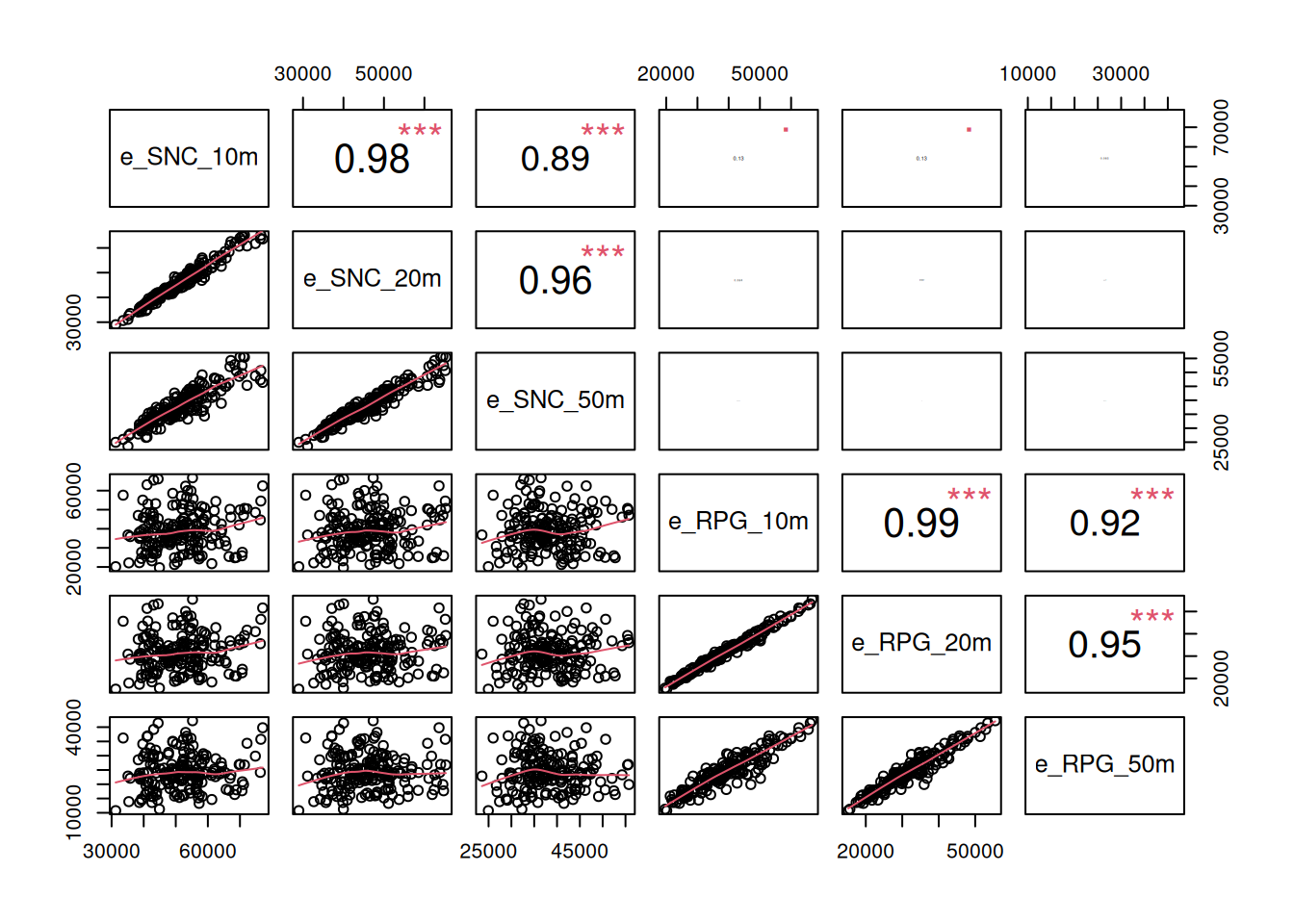 La densités de bordures depend aussi de la résolution spatiale. Ici on va tester 3 résolutions: 10m (résolution originale), 20m, 50m.
