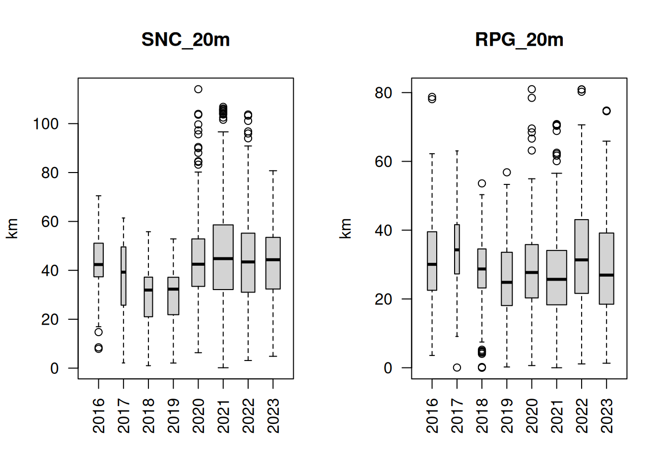 The number of NAs in Table 8 is a results of the number of observations per year (Table 1). For instance at year N, there are NAs for observations carried out in 2014, 2015, and 2024. For year N-1, the NAs correspond to observations carried out in 2014, 2015, and 2016.