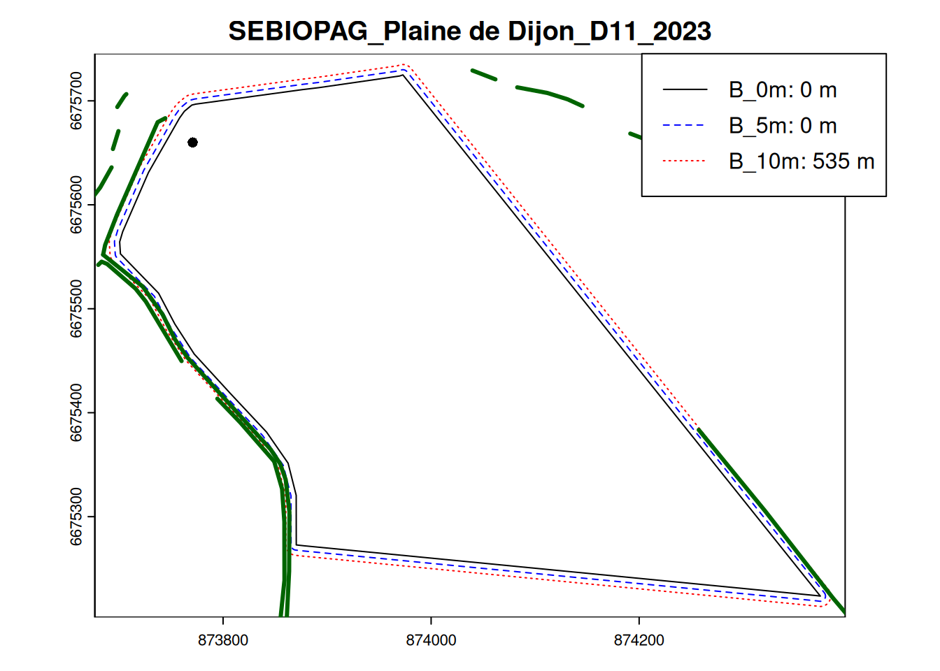 - Which buffer size should we use to calculate the hedgerows lengths? Without buffer, it might be too restrictive, but is 10m too large, or not enough?